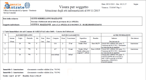 • Stampa della voltura catastale (catasto fabbricati e catasto terreni)