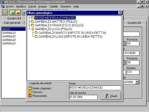 DE.A.S. effettua in automatico il calcolo delle quote a partire dal grado di parentela degli eredi gestendo anche i casi di rappresentazione (artt. 467 e 468 del Codice Civile) e genera il relativo albero genealogico permettendone anche una completa personalizzazione.