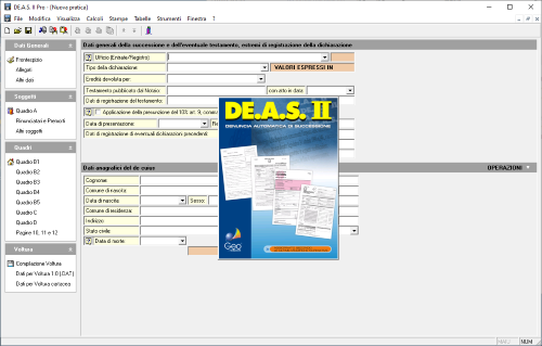 DE.A.S., Denuncia Automatica di Successione, è il software professionale per la gestione delle dichiarazioni di successione e delle domande di voltura catastale utilizzato dai più importanti centri di assistenza fiscale, dai maggiori studi notarili e da decine di migliaia di altri professionisti del settore.