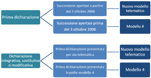 - il "vecchio" modello 4, ancora da utilizzarsi per le successioni apertesi prima del 3 ottobre 2006 e per le dichiarazioni integrative di quelle presentate allo sportello