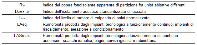 - l'indice del potere fonoisolante apparente di elementi di separazione orizzontali e verticali tra ambienti R'w