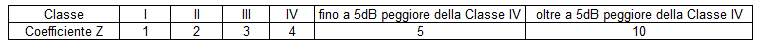 In base al valore del Coefficiente Z si ottiene la classe acustica dell'unità immobiliare come dal seguente Prospetto 3: