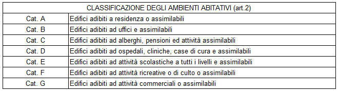 In relazione alla tipologia di edificio il D.P.C.M. fissa per le grandezze di riferimento, sopra descritte, i seguenti valori: