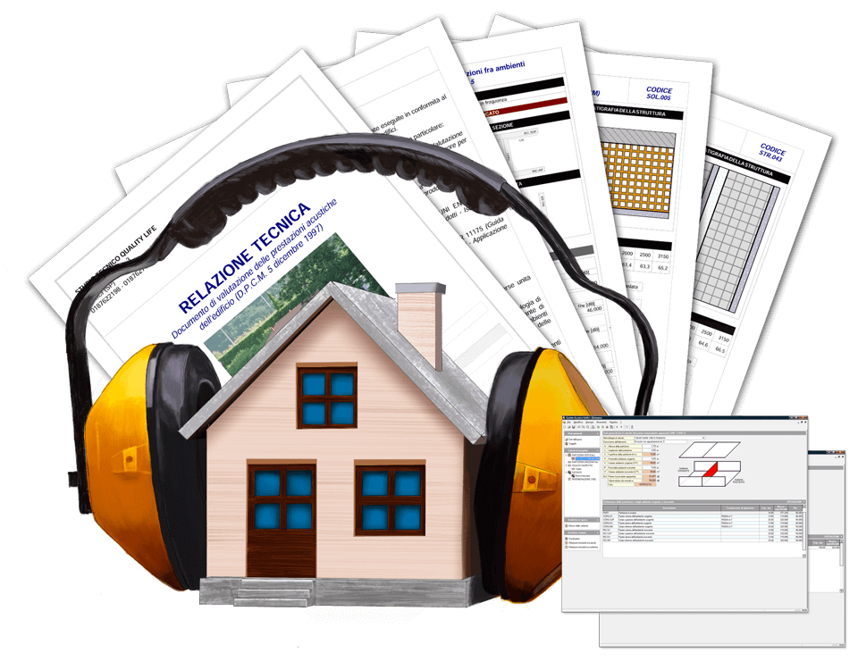- calcolo dell’isolamento degli edifici secondo le norme UNI EN 12354 - Acustica in edilizia: “Valutazioni delle prestazioni acustiche di edifici a partire dalle prestazioni di prodotti”