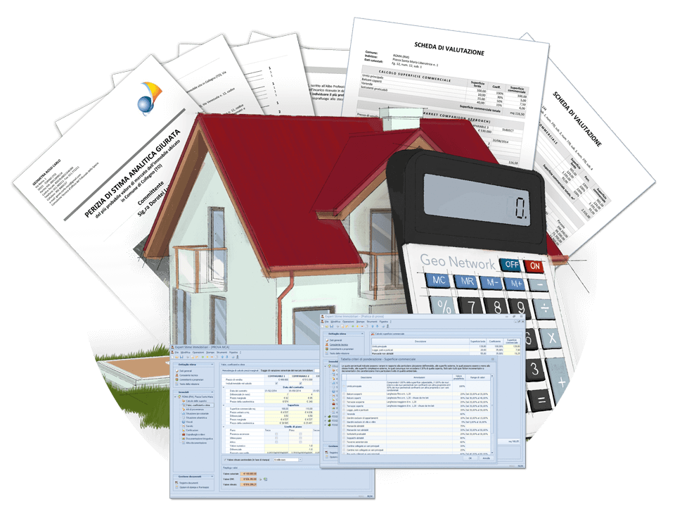 Expert Stime & Esecuzioni Immobiliari è il software Geo Network di ausilio al professionista per il calcolo del più probabile valore di mercato degli immobili e per la redazione della relativa perizia pienamente conforme ai dettati della norma UNI 11612:2015, agli IVS International Valutation Standards ed alle linee guida ABI.